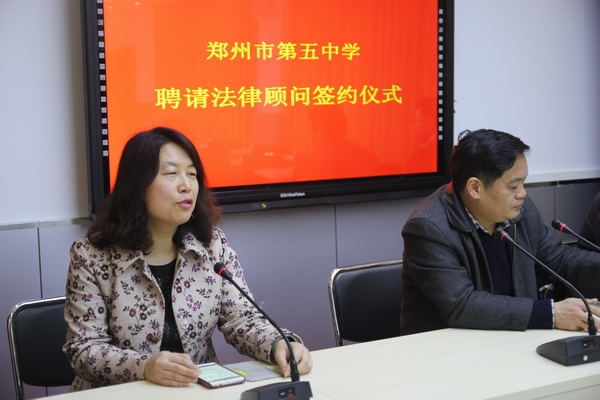 通过此次聘请法律顾问签阅仪式,郑州五中在预防和处理学校法律事务和纠纷上多了一道保护。